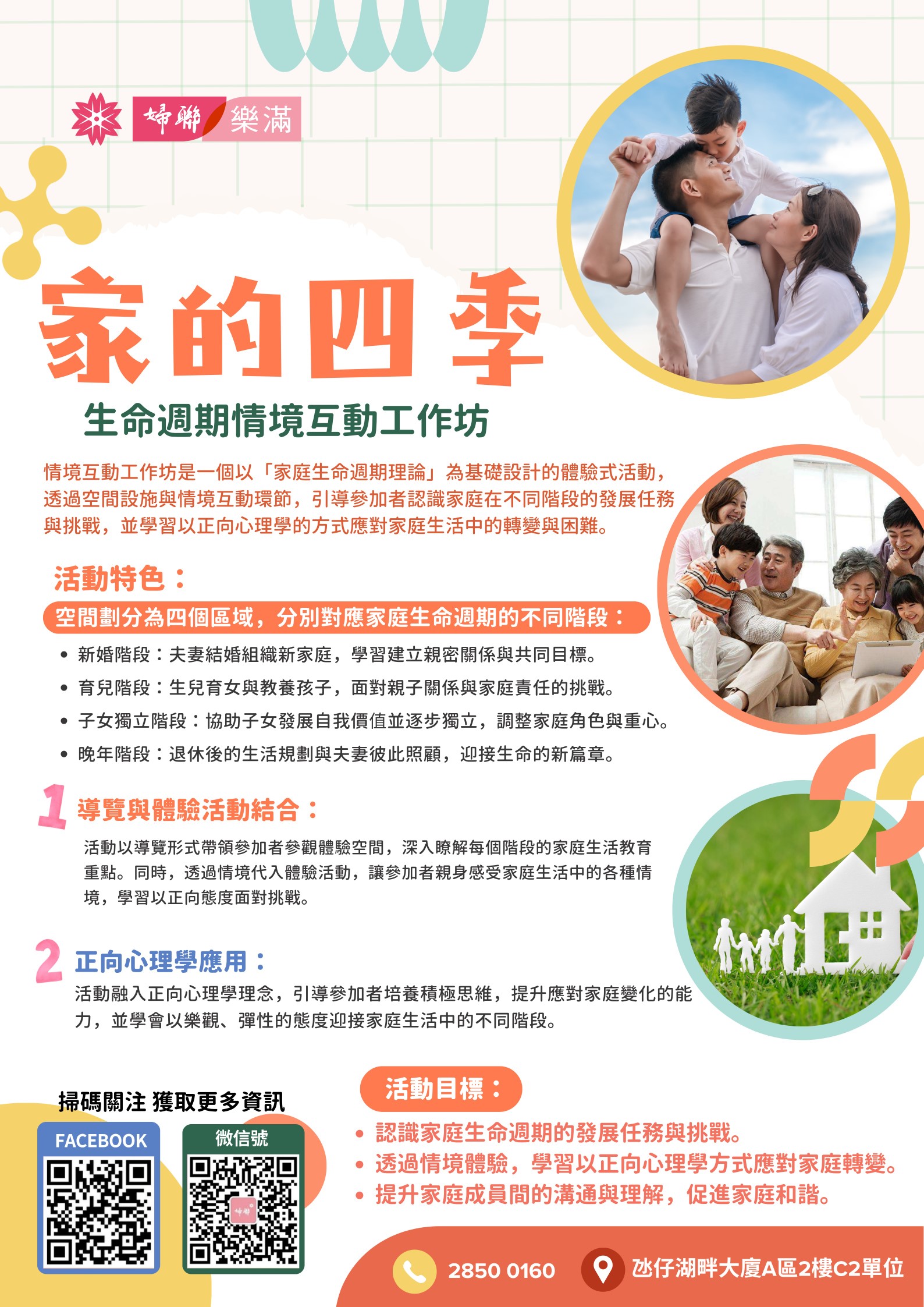 以個人成長、親職教育及婚姻關係等家庭教育相關主題,結合攤位遊戲或街站等形式,向市民推廣正向家庭教育的資訊。
